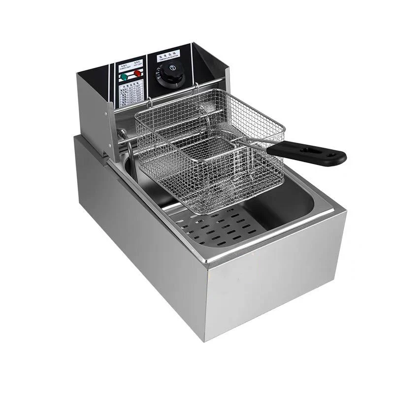 মেশিনের ধারণা: চীনে তৈরি এটি একটি ইলেকট্রিক ফ্রায়ার মেশিন। এই মেশিনের মাধ্যমে আপনি বিভিন্ন রকম তেলে ভাজা ভাজতে পারবেন যেমন আলু, সিংড়া, জিলাপি, পাকোড়া ইত্যাদি। এটি ব্যবহার করা যেতে পারে রেস্টুরেন্ট, ক্যাফে বা স্ট্রিট ফুড দোকানগুলোতে ব্যবহার করা হয়। মেশিনটির ৬ লিটারের বড় ট্যাংক থাকার কারণে একসাথে অনেক পরিমাণে খাবার ভাজা সম্ভব হয়।